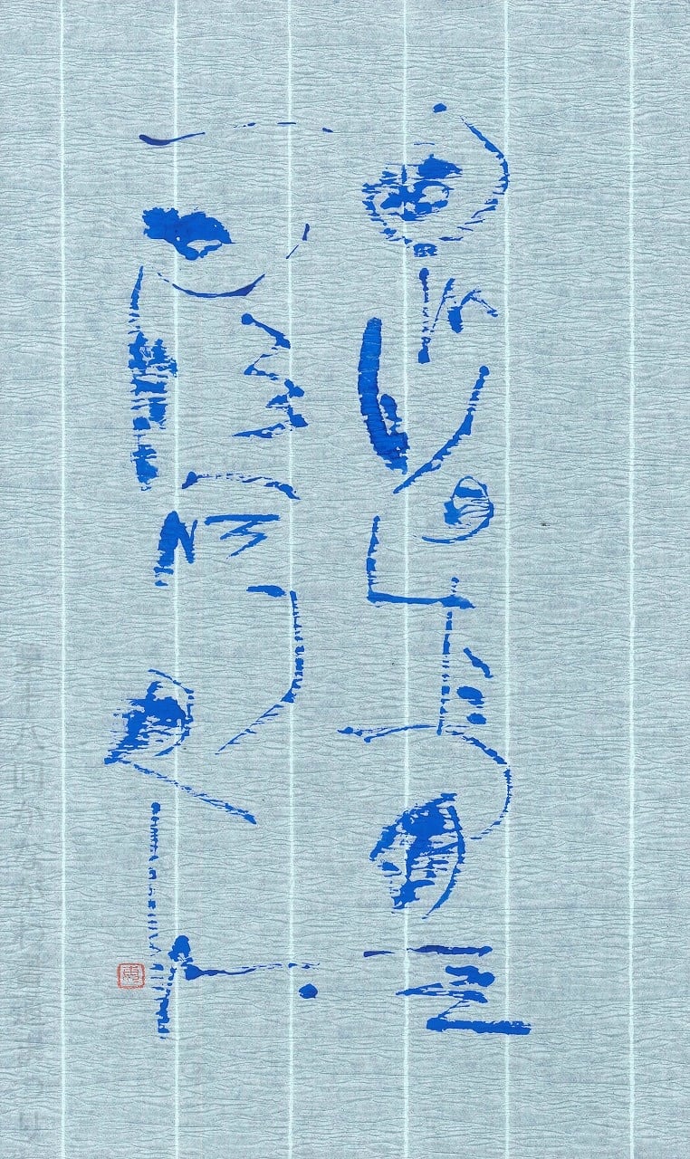 書道作品「2025、12 ブルーライン」 | 小野 恵子 作 (額装・一点物・チャリティ) No.023
