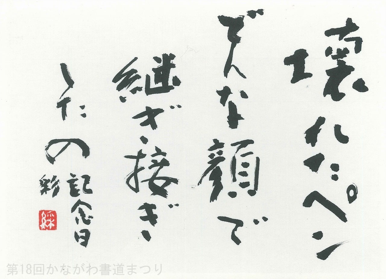 釈文:壊れたペンどんな顔で継ぎ接ぎ…