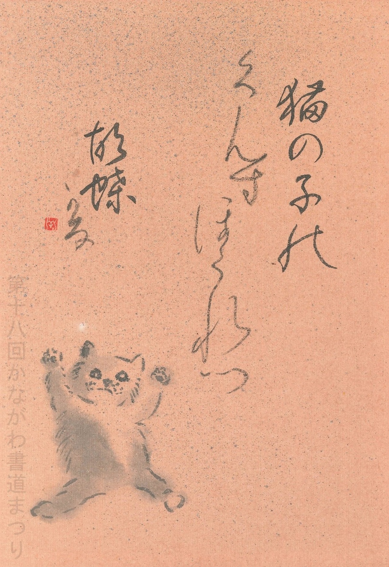 書道作品「猫の子」 | 湊谷 洋子 作 (額装・一点物・チャリティ) No.303
