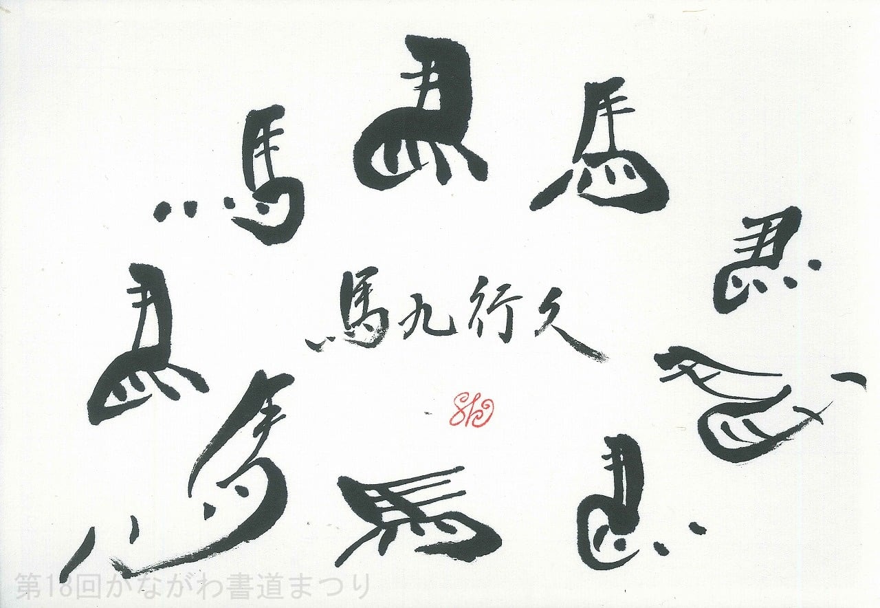 書道作品「馬九行久」 | 楠本 竹葉 作 (額装・一点物・チャリティ) No.342